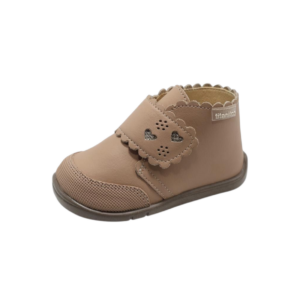 B500 María: Nuestro modelo María bota respetuosa que proporciona a los más peques un calzado cómodo, blandito y que respeta la forma natural del pie sin afectar a su desarrollo. Piso súper blandito y flexible para que nuestros bebés tengan una pisada natural al caminar como lo harían si fueran descalzos, vital para el correcto desarrollo motor y cerebral. Fabricados en piel natural española, suave, adaptable y transpirable, evitando rozaduras y malos olores en los pies. Con dos de nuestras características exclusivas Titanitos más punteras, Bubble Absorber y Movelastic, que absorben el impacto de la pisada y ayuda a que la suela sea súper flexible, facilitando la flexión del pie y se adapta a la forma natural de caminar. Cierre de velcro reforzado para evitar su rotura prematura y facilitar el desarrollo anatómico del pie y plantilla perfumada antibacteriana.