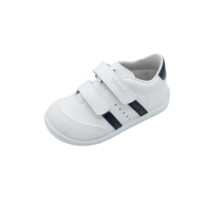 B500 Amancio blanco navy: Nuestro modelo Amancio es un zapato deportivo respetuoso que proporciona a los más peques un calzado cómodo, blandito y que respeta la forma natural del pie sin afectar a su desarrollo. Piso súper blandito y flexible para que nuestros bebés tengan una pisada natural al caminar como lo harían si fueran descalzos, vital para el correcto desarrollo motor y cerebral. Fabricados en piel natural española, suave, adaptable y transpirable, evitando rozaduras y malos olores en los pies. Con dos de nuestras características exclusivas Titanitos más punteras, Bubble Absorber y Movelastic, que absorben el impacto de la pisada y ayuda a que la suela sea súper flexible, facilitando la flexión del pie y se adapta a la forma natural de caminar. Cierre de velcro reforzado para evitar su rotura prematura y facilitar el desarrollo anatómico del pie y plantilla perfumada antibacteriana.