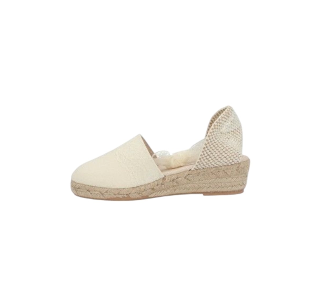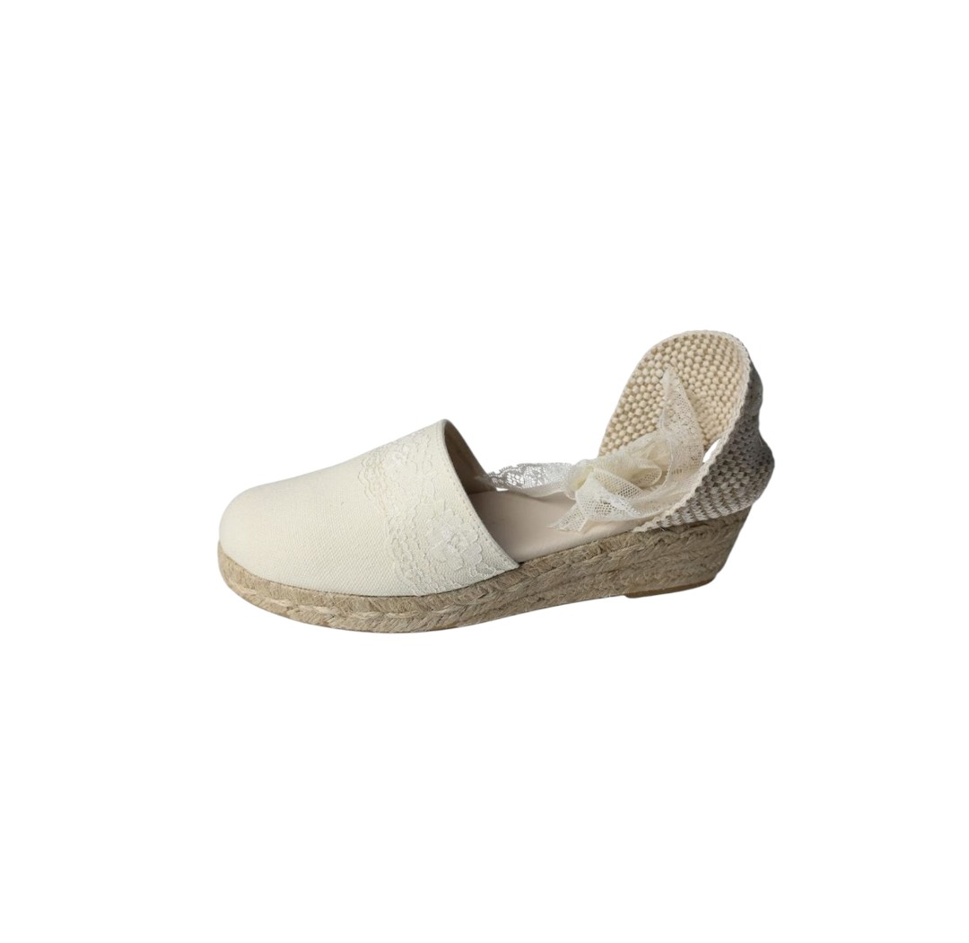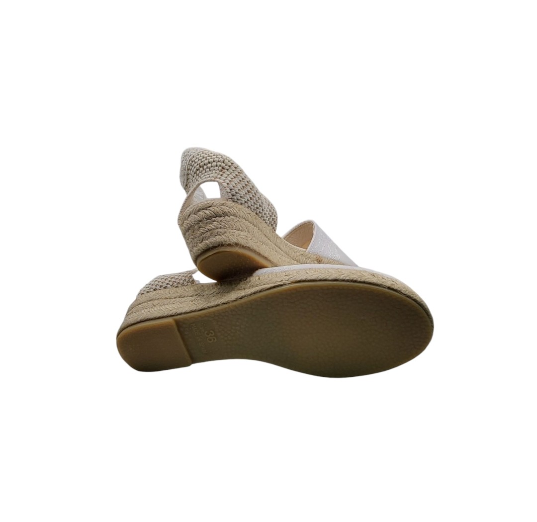 - Suela: de esparto trenzado con un ligero tacón, proporcionando comodidad y estabilidad.