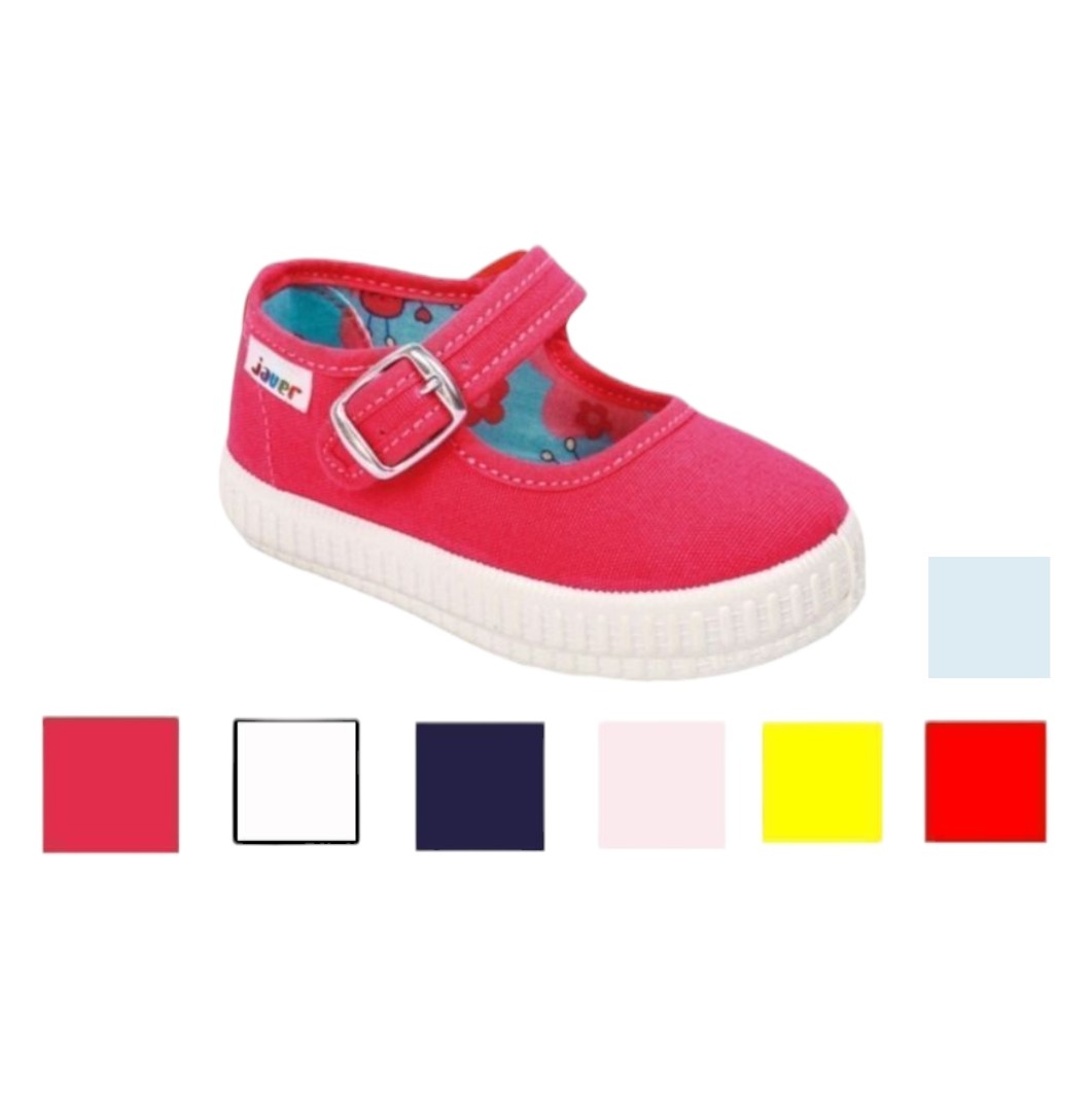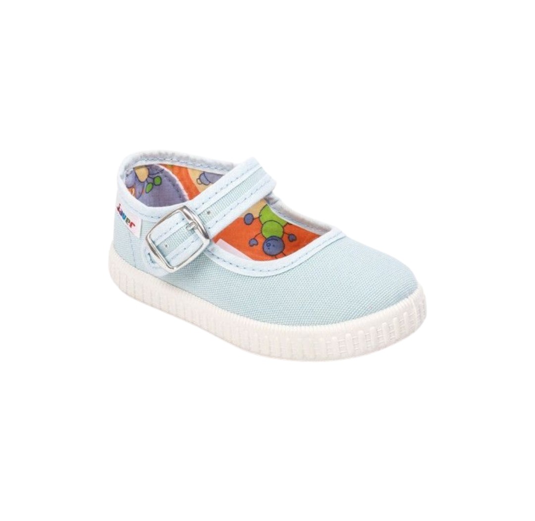 Unas merceditas ideales. Suaves y flexibles, perfectos para los pies de los más pequeños. Zapato tipo mercedita fabricado en tejido con sistema de cierre de botón en hebilla. La parte interior está fabricada con forro textil, no lleva planta interior y la suela es de goma antideslizante. Calzado diseñado y fabricado en España.