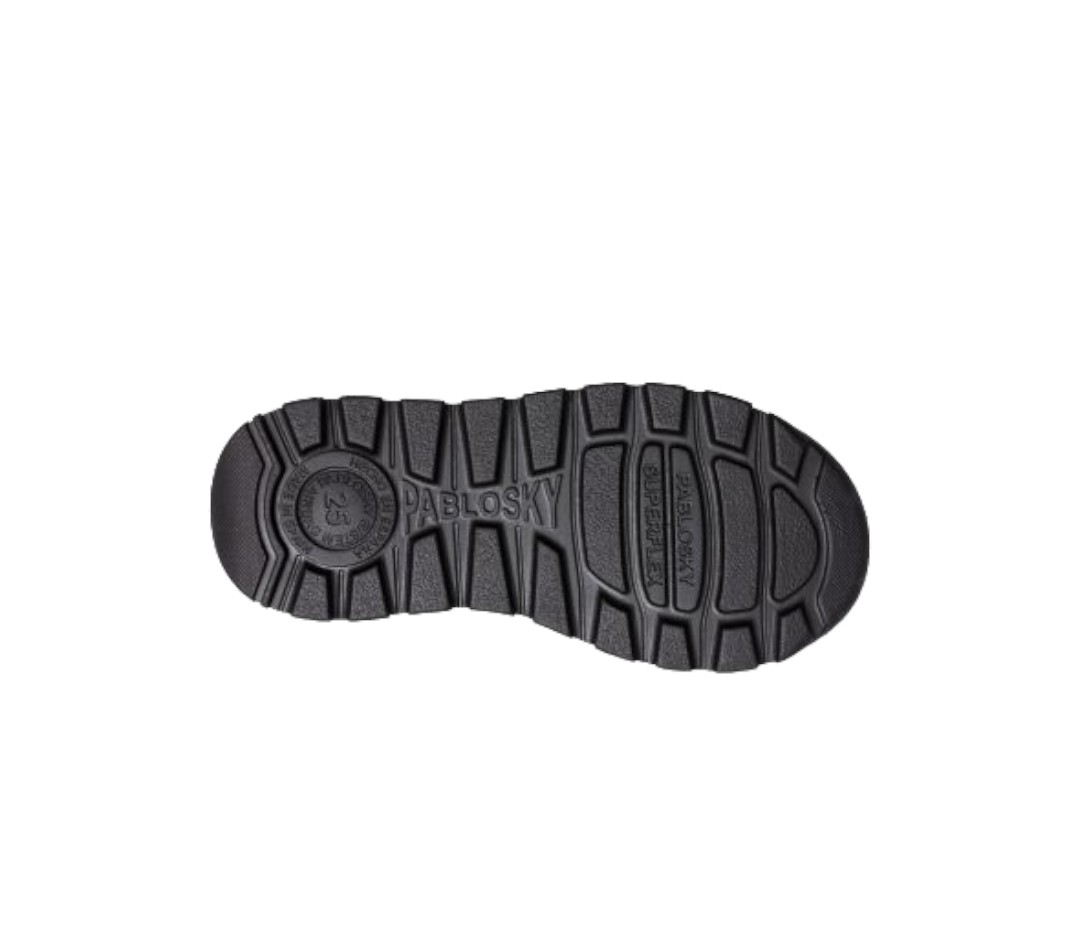 - Piso de goma antideslizante y de alta resistencia, que incorpora las exclusivas tecnologías SUPERFLEX, que favorece la flexión normal del pie, y AIRBAG amortiguador de pisada .Además de los protectores interiores de talón y puntera, incorpora puntera de goma exterior para una mayor protección y durabilidad .Utiliza horma fisiológica para el correcto desarrollo del pie