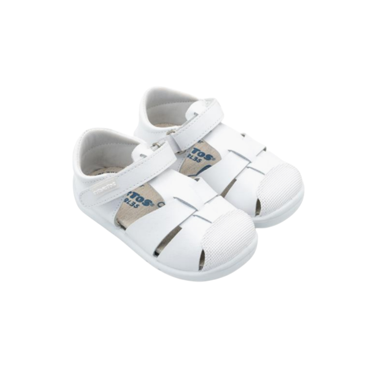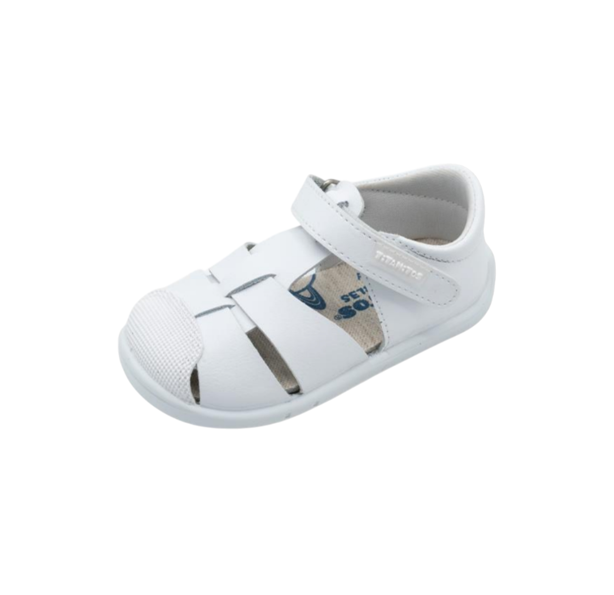 Sandalia Respetuosa Félix de Titanitos – Piel Lavable en Blanco