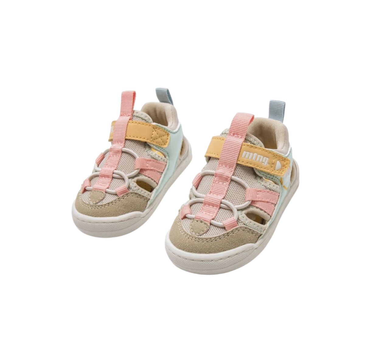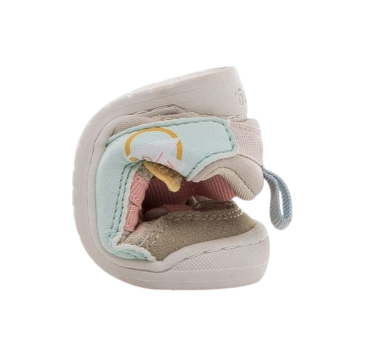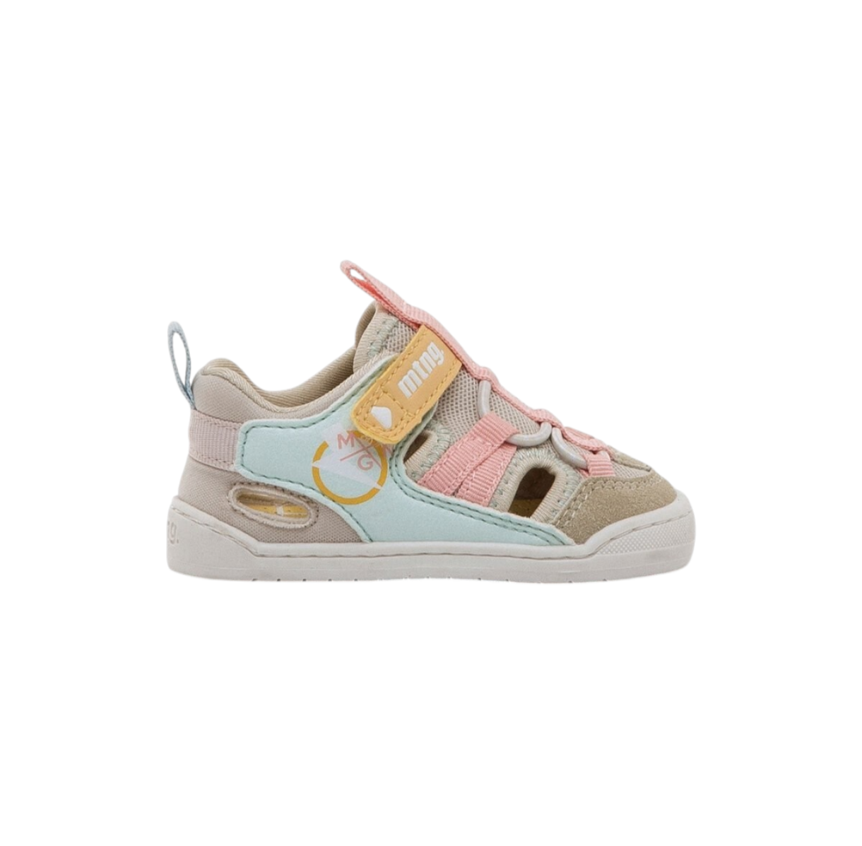 Las sandalias Free Baby de Mustang están diseñadas para acompañar el desarrollo natural del pie del bebé. Su estilo outdoor combina una base beige con detalles en tonos pastel como aguamarina, rosa y mostaza, creando un diseño alegre y veraniego perfecto para los días más cálidos.